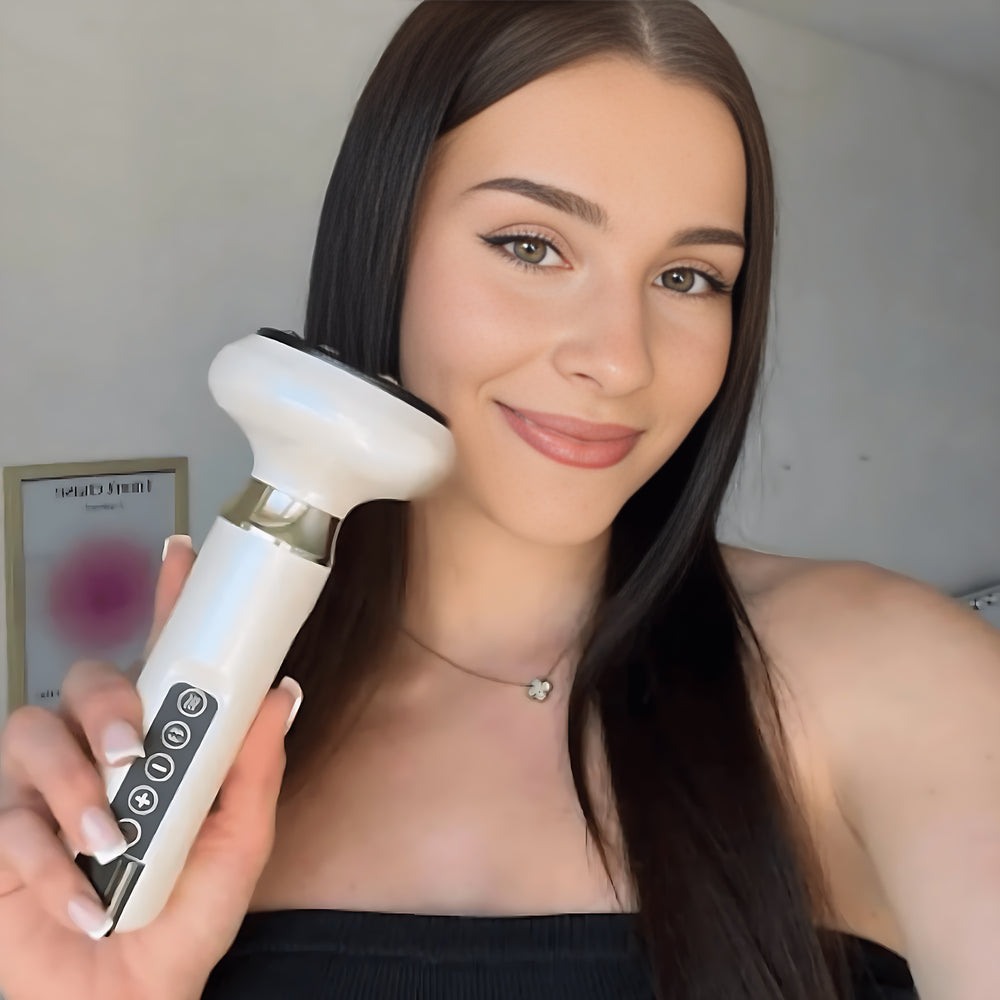 Second, controlled infrared heat between 35–50°C penetrates into deeper layers of the skin, improving blood flow and supporting elasticity. Heat also enhances the skin’s ability to remodel itself, making it more resilient and less saggy over time.