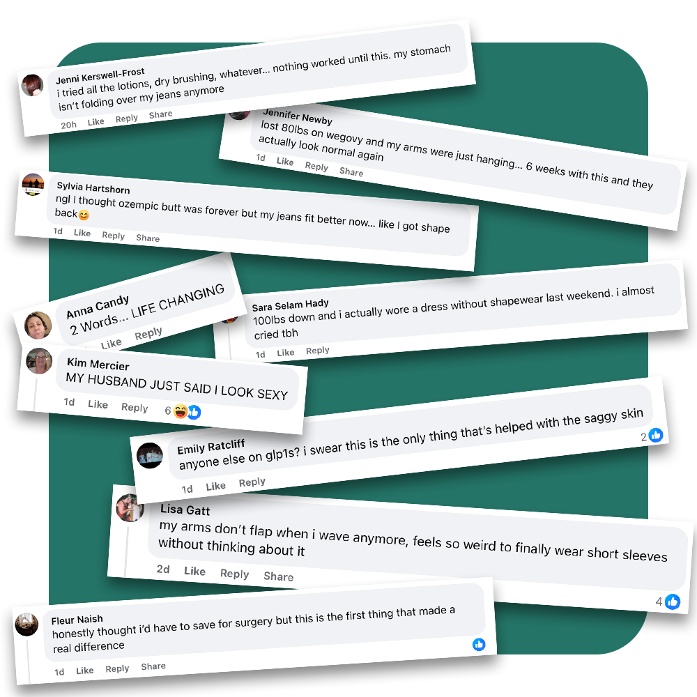 Rapid GLP-1 weight loss is amazing, but it doesn’t give your skin time to keep up. That’s why sagging happens. By using Firmora™ for just 5 minutes a day you're boosting collagen and elasticity, so your skin tightens naturally.